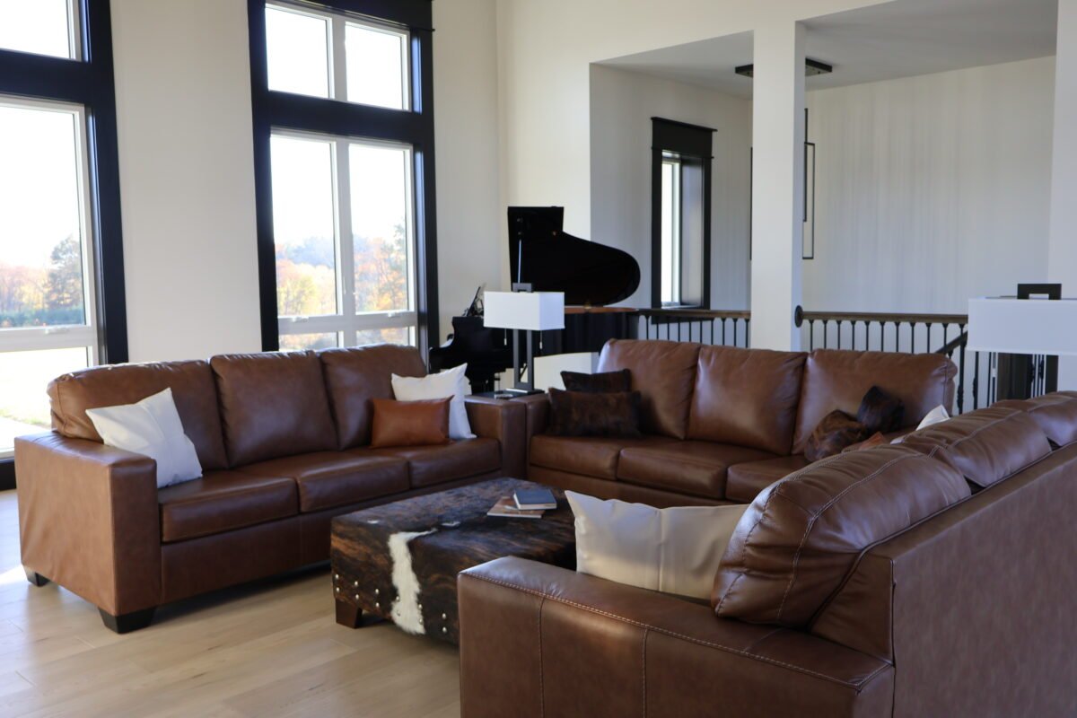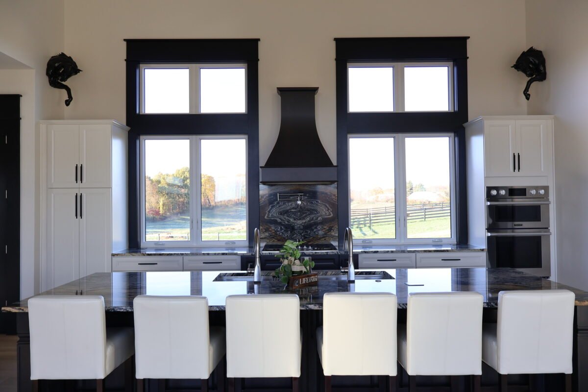 The family wanted a dream house to match their dream property—and with sweeping hills and open views, this was no small feat. We designed a home with an open layout ideal for hosting, and large windows that frame the landscape and bring the outdoors in year-round. Every element was thoughtfully considered to create a peaceful oasis that feels welcoming. It’s a place designed for gathering, connection, and everyday living.